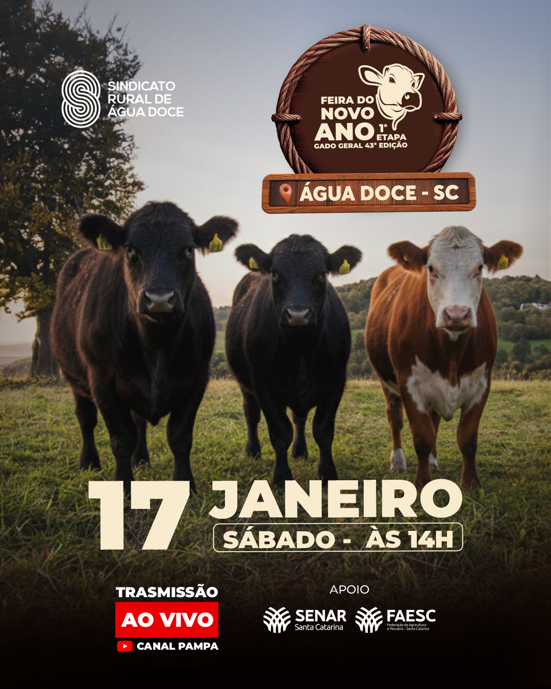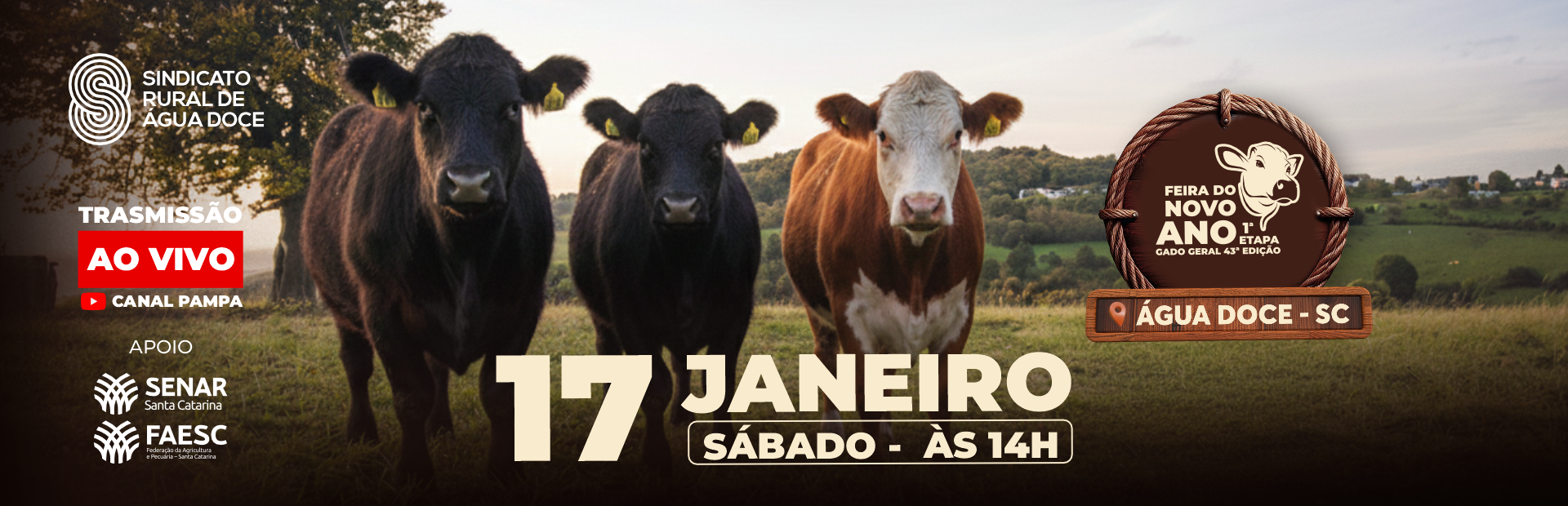 Sindicato Rural de Água Doce SEJA UM ASSOCIADO Nossos serviços Seguros e jurídico Animais Cursos e palestras Seja um apoiadorSaiba mais Patrocinadores Agenda de feiras Sobre o Sindicato Uma jornada de sucesso 142PRODUTORES ASSOCIADOS 54ANOS DESERVIÇO 03CIDADES ABRANGIDAS
